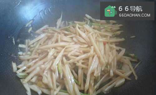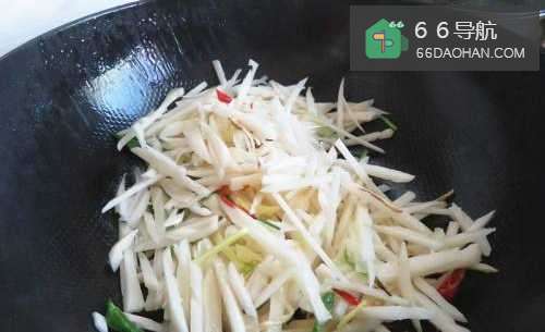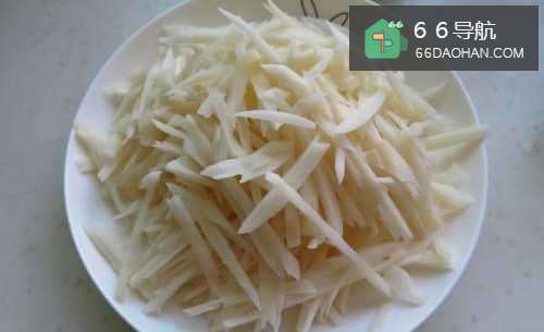 2去皮洗净切细丝后倒入水中泡去淀粉沥干水分