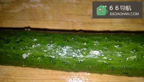 先把黄瓜切成切片,然后再分成对半的菱形状,这样可以让黄瓜片在菜中的比例占多,吃的时候多蔬菜的清爽而不油腻。