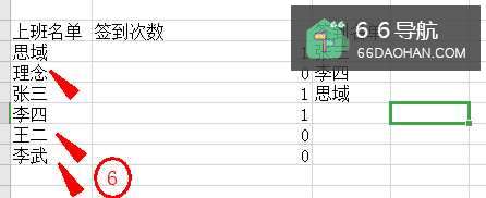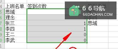 5下拉单元格就可以看到每个人的签到次数