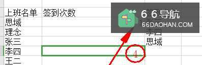 2选中签到次数下的单元格
