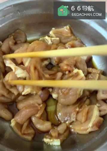 将瘦肉切成薄片,倒入酱油,和蚝油拌匀。
