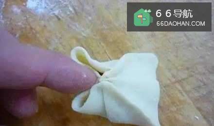 5将馅心包起来,把两条直边捏起来。