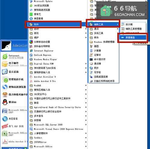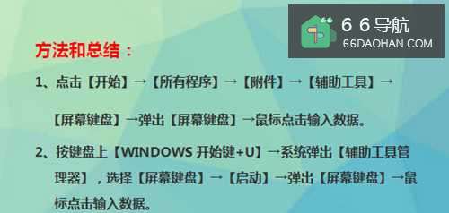 1、点击【开始】→【所有程序】→【附件】→【辅助工具】→【屏幕键盘】→弹出【屏幕键盘】→鼠标点击输入数据。