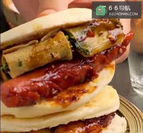 5准备一个饼,把炸好的串串夹起来,要上一口满嘴流油,美滋滋!