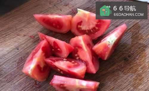 3把煮过的番茄捞出来,撕去外皮,然后切成番茄块