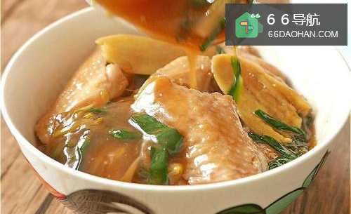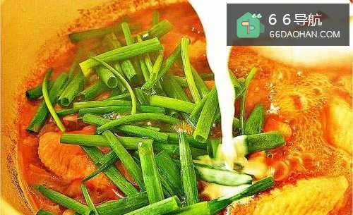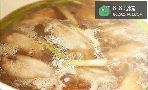 3加入姜和葱白炒23分钟至闻香后,加入水、蚝油、冰糖和老抽拌匀煮滚。