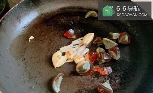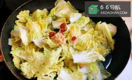 4加入枸杞、虾皮,略为翻炒后盖上过盖,焖煮至娃娃菜软化