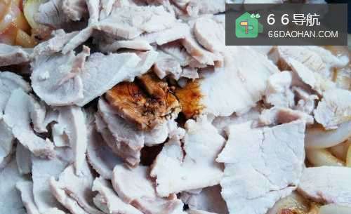 2猪肉放锅里(猪肉比较大块,蝶姐将其切成两块,熟的快些),冷水淹没,煮20分钟左右(大火烧开后请关小火),捞出放冷,分肥瘦切成薄片备用。