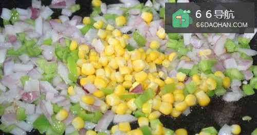 2将鸡蛋搅匀,辣椒和洋葱切粒、玉米粒洗净备用。