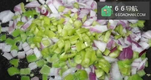 3锅中放油烧热,放入洋葱和辣椒翻炒至断生。