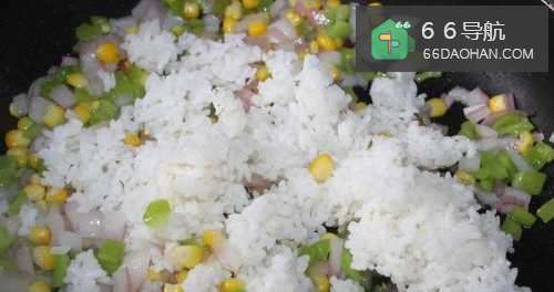 首先准备好米饭、鸡蛋、洋葱、辣椒、玉米粒备用(大家可以按照自己的口味调整食材)。