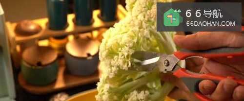 菜花剪掉一个一个的,放进盆里,用清水清洗干净,土豆切块,一旁备用。