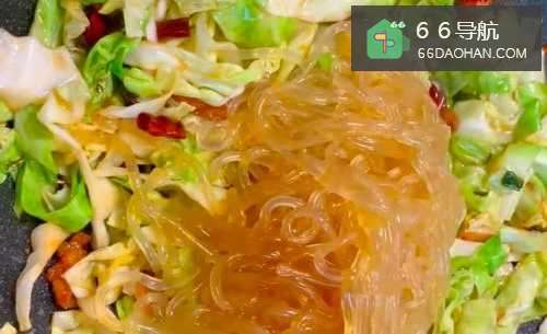 6最后倒入煮好的粉条,翻炒均匀,出锅装盘即可。