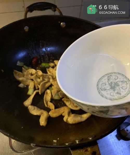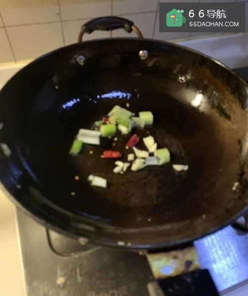 2起油锅,油热后放入葱、蒜、辣椒翻炒,放入素鸡翅(素鸡翅要提前泡一会)