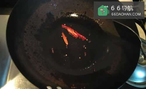 4第四步,在油锅中倒入干辣椒,再倒入大葱和生姜。