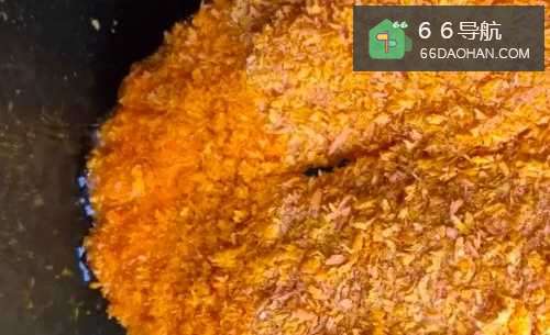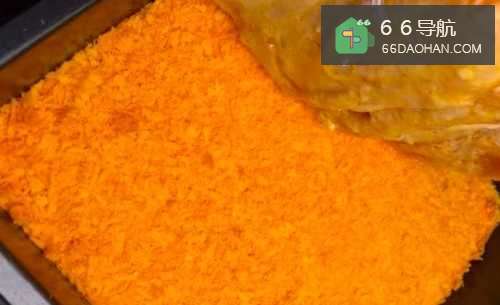 5最后再把鸡胸肉两面裹上一层面包糠,就可以准备开炸了。