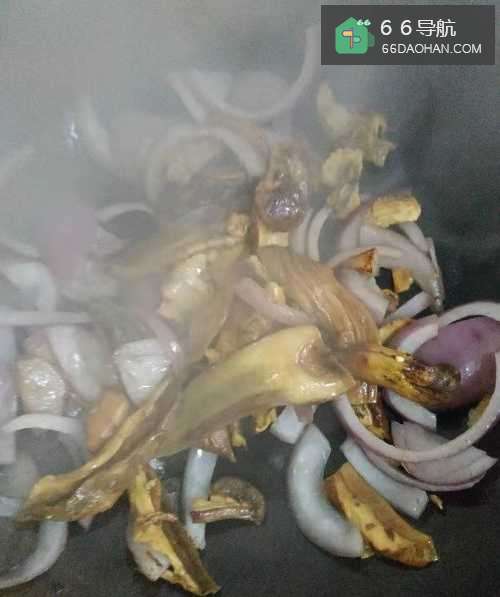 3起油锅,放入洋葱翻炒,略加点水,省得烧焦。