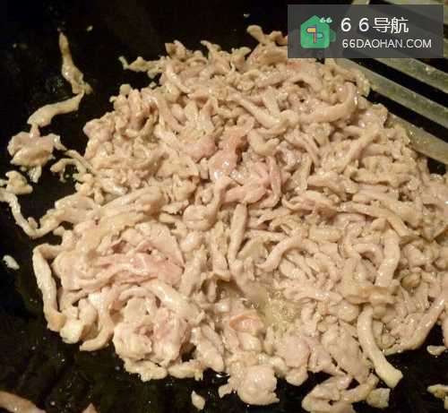 4第四步热锅加入食用油,将第二步中的肉丝分散倒入锅中,待肉丝变色即可捞出