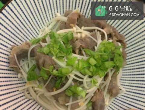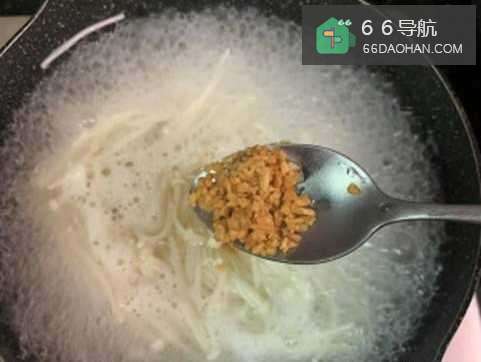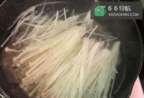 9金针菇和肥羊卷盛入碗中,撒上香芹末,倒入汤水即可。