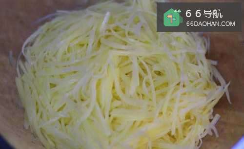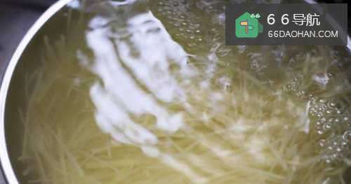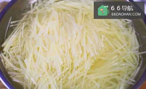 8锅里倒适量水,水开后把土豆丝倒进去焯熟