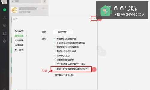4在“通用设置”界面,勾选【聊天中的语音消息自动转成文字】,点击【关闭】即可;