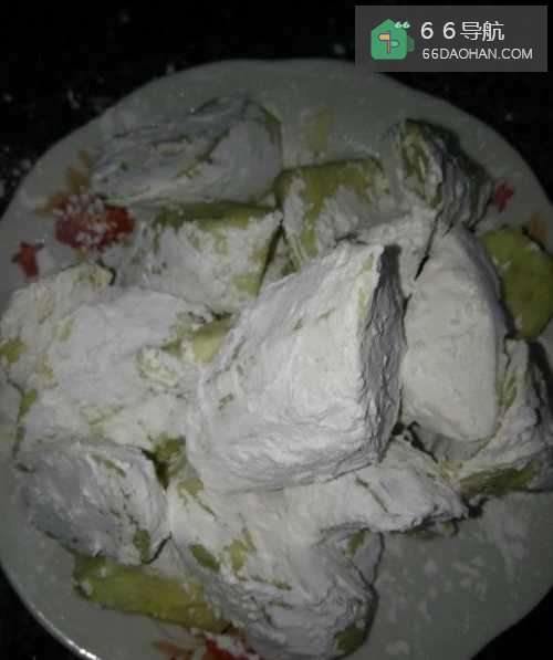 3将茄子先沾一下鸡蛋液,再裹上生粉;