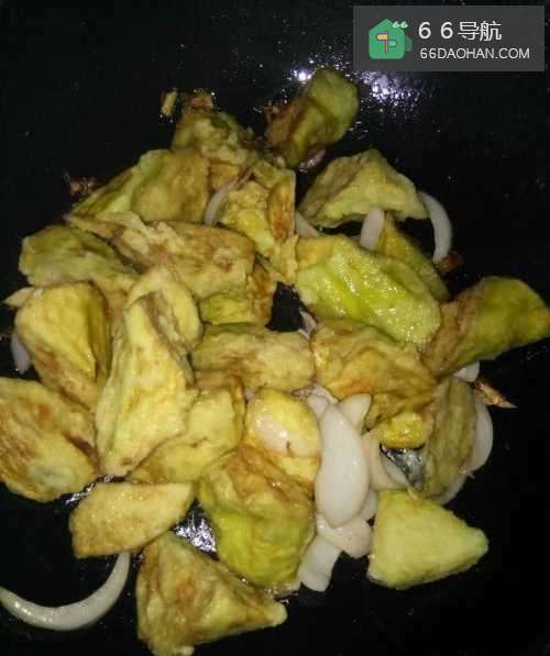 5将洋葱先下锅炒香,再将茄子下入锅里炒匀;