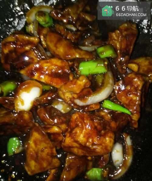6将料汁倒入锅里,再加入尖椒,炒熟,即可。