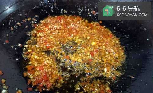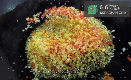 6起锅倒油,油热后放入蒜末、辣椒末炒香