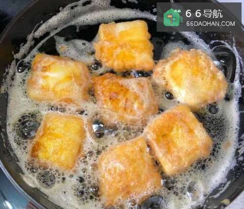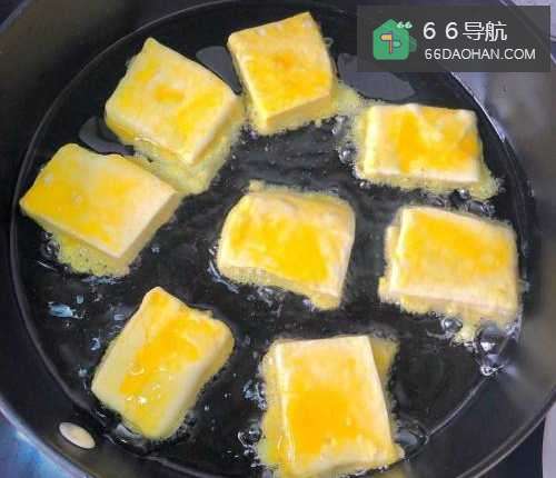 6锅里倒适量油,油热后把豆腐放进去,小火煎至