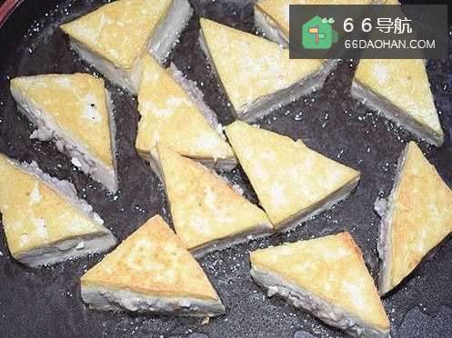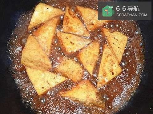 5起锅热油,把豆腐下锅煎至两面金黄,盛起控迪;
