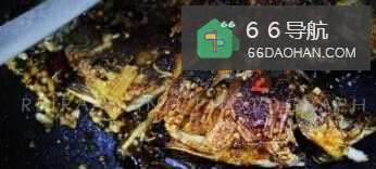 5步骤五、在鱼的双面涂上适量豆瓣酱,双面煎约1分钟,期间依次撒入姜蒜末,