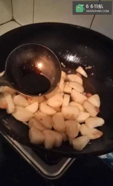 6我们加一点酱油,上上色,为了保持山药的脆性,可加一点白醋