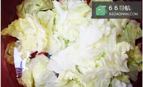 3将小片的包菜叶用清水洗净,反复清洗几次,然后捞出沥干备用。