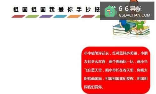 2在【祖国祖国我爱你手抄报】标瞧陕板题的右侧处,画出画面丰富内容,如下图所示。