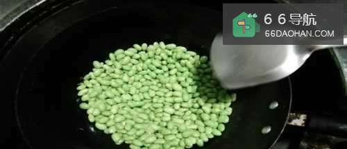 5放入毛豆和肉翻炒,加入盐和酱油酒