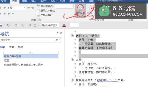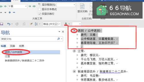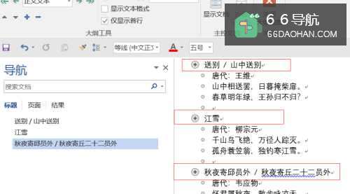 如下图分别选中唐诗的标题,将正文文本变成1级文本。