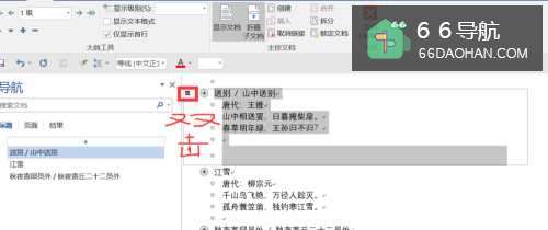 4第四步,对文本进行分级之后,可以将文本内容分成三部分内容,点击标题前的加号,如此可以将整首诗选中。