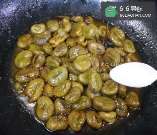 8蚕豆剩下一点汤汁的时,加入盐调味。
