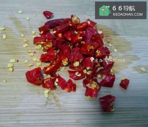 3热锅放油,先将红辣椒下锅爆香,然后把红辣椒捞出来不要了。