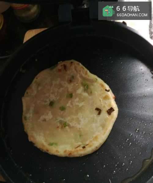 7第七步,在电饼铛里面煎烤一会翻一翻,煎烤到颜色发黄,就可以起锅了。