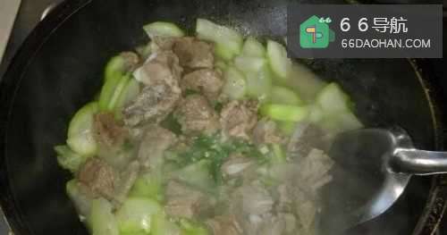 再翻炒一下,让盐和味精的味道融入到排骨和瓠子中,在小火烧两三分钟即可。