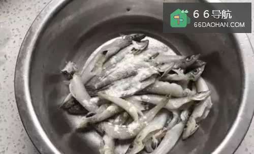 轻轻抓搓,让沙丁鱼身上沾上一层薄薄的面粉。