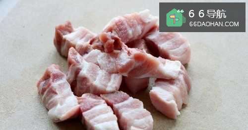 3五花肉切块,冷水下锅焯去血水;捞出沥干水分;