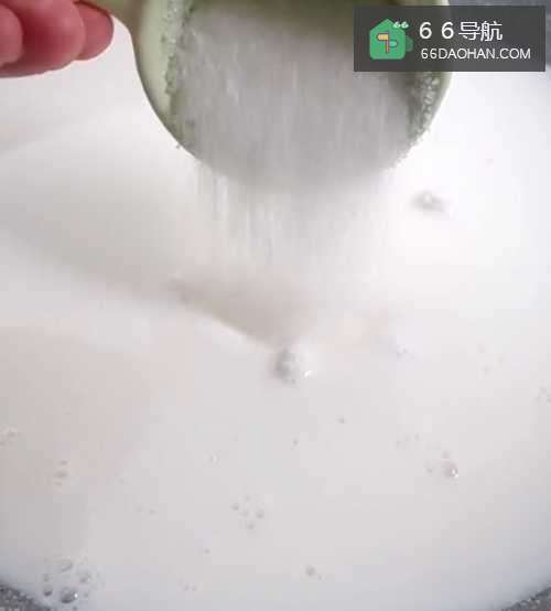 3小锅中倒入牛奶、凉粉、白糖,小火煮开、边煮边搅拌