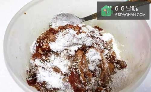 五花肉切条后,加入酱油、米酒、糖、五香粉、胡椒粉腌15分钟左右