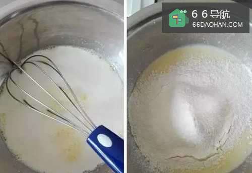 2加入牛奶搅匀,筛入低粉搅匀;