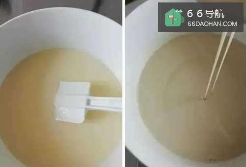4过筛后的面糊非常细腻,冷藏后的面糊更加浓稠,右图是冷藏后的面糊,可以直接煎,如有时间可以冷藏半小时;