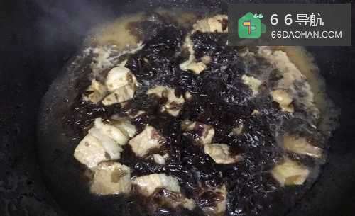 4翻炒1分钟后加入半碗冷水,开大火烧开,差不多2分钟即可加入一点盐进行调味。