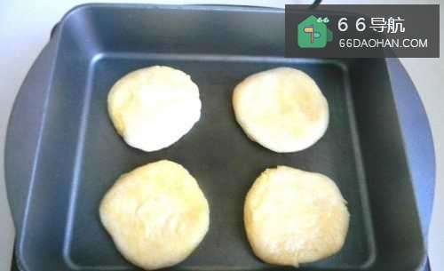 6把饧好的面剂子擀成约1cm厚的小饼,放到平底锅或电饼铛中烙制。